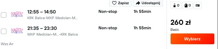 - przelot do Mediolanu (we własnym zakresie), transfer z lotniska dodatkowo płatny,