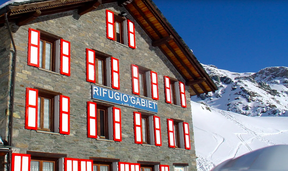 Refuge Gabiet znajduje się w kotlinie należącej do gminy Gressoney-La-Trinité, na wysokości 2375 m, w pobliżu jeziora Gabiet. Posiada jadalnię, bar i salon ogrzewany kominkiem, wyposażony w małą bibliotekę.