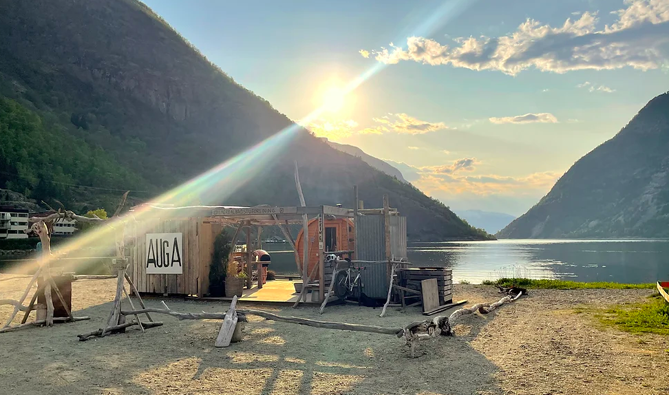 - 10:00 – przejazd 1,5h nad fjord (pomiędzy Sognefjorden, a Lustafjorden), a następnie udajemy się do sauny Auga Bad mieszczącej się na brzegu fjordu. Opcjonalnie dla osób niezainteresowanych sauną – możliwość wypożyczenia kajaków.