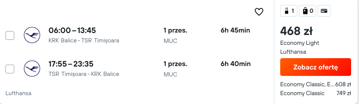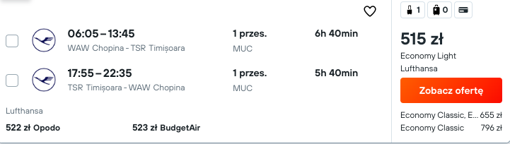 - Poniżej przesyłamy propozycję lotów z Warszawy i Krakowa – najlepsze ze względów logistycznych i cenowych