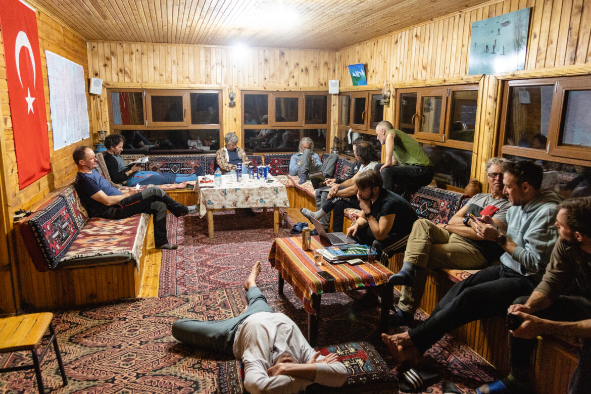 - 9:00 -15:00 — pierwszego dnia przechodzimy szkolenie lawinowe i bezpieczeństwa (około 2-3 godzin). Następnie wsiadamy na ratrak i tak jak w inne dni, eksplorujemy naszą piękną okolicę (las, żleby i, co najważniejsze, otwarte, strome zbocza o średnim nachyleniu 25-35 stopni). W przypadku złej pogody mamy duży, słabo zalesiony teren tuż obok. Większość czasu spędzimy na jeździe w dolinie między przełęczą Yüncüler a miastem Yaylarar, które ma wiele niesamowitych tras.
